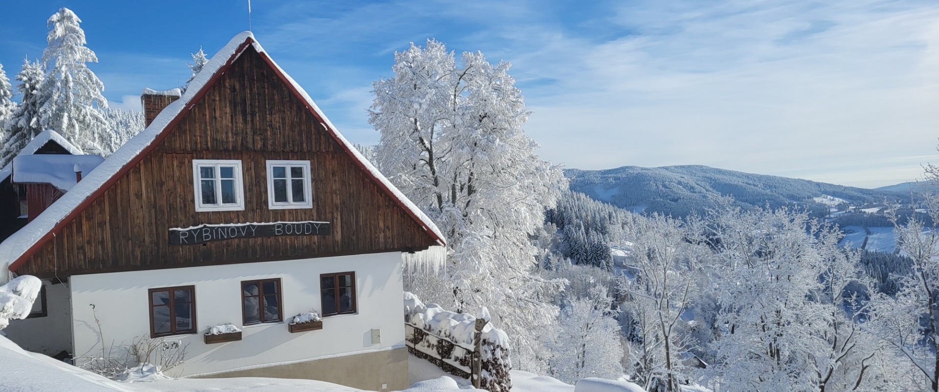 Turistická chata byla léta provozovaná KČT z Mladé Boleslavi. Posledními správci pod KČT byli rodiče Rybínovy. Po jejich odkoupení do soukromého vlastnictví chatu nadále provozovali a starali se o ní. Během posledních let jsme se stali jejich pokračovateli, jejich syn Honza s manželkou Lucií. Provozování boudy se snažíme zachovat v původním duchu a atmosféře - hory a příroda jsou tu pro každého a nocležníka, byť jediného, neodmítneme, pokud k tomu nejsou zvlášť závažné důvody. Tak neváhejte a přijďte také, klidně i se svým psím mazlíčkem. Příroda je tu božská. Dole najdete pár fotek zvenku a jestli chcete vědět jak to vypadá uvnitř - račte vstoupit .